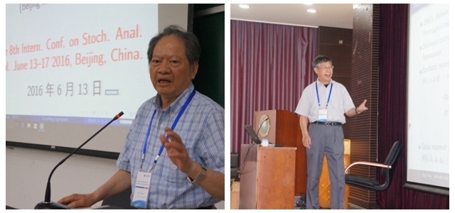 6月14日, 山东大学的彭实戈院士做了题为“Rough paths for nonlinear G-Brownian motion”的四十分钟大会报告。众所周知,彭实戈院士最早引入了G-期望以及条件G-期望的概念,从而建立了动态非线性数学期望理论基础。彭院士的这些研究结果对于概率论、统计学、风险分析、随机分析的发展有非常重要的推动作用。彭院士在本次报告中主要介绍了自己及合作者采用“quasi-surely”分析方法研究关于G-布朗运动的轨道积分和相应的微分方程的最新成果。随后,中国科学院数学与系统科学研究院副院长巩馥州教授,北京师范大学王凤雨教授,武汉大学的张希承教授,日本神户大学Naitaka Kajino教授,韩国国立首尔大学Panki Kim 教授,美国密歇根州立大学肖益民教授(开云kaiyun官网长江学者讲座教授),上海交通大学陈新兴教授和开云kaiyun官网王洁明老师分别报告了各自的最新研究成果。