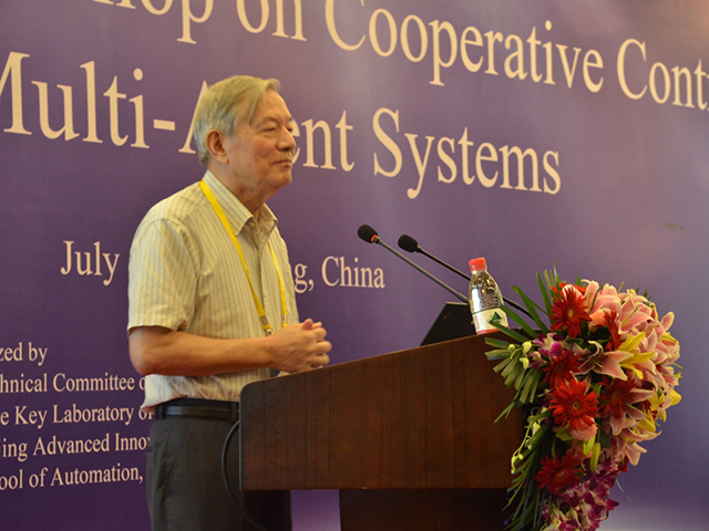 新加坡国立大学Prof. Ben M. Chen介绍了无人机研究现状及发展;新加坡南洋理工大学Prof. Lihua Xie介绍了多智能体系统分布式协同控制的统一鲁棒控制框架;中科院数学与系统科学研究院程代展研究员介绍了多智能体系统中的博弈控制论;中科院数学与系统科学研究院张纪峰研究员介绍了Markov环境下多个体系统的平均场博弈的最新研究进展;美国弗吉尼亚大学Prof. Zongli Lin介绍了具有非理想驱动器的线性多智能体的鲁棒半全局领航-跟随控制的一致性;研讨会的协主席Prof. Wei Ren介绍了多智能体系统的分布式均值一致和连续时间优化的最新研究进展;香港城市大学Prof. Gang Feng介绍了多智能体系统事件触发控制策略与应用的最新研究进展;香港城市大学Prof. Lu Liu介绍了非线性多智能体系统的自适应协同输出调节控制;香港中文大学Prof. Jie Huang介绍了多智能体的自适应分布式观测器与协同控制方法;美国纽约大学Prof. Zhong-Ping Jiang对大规模非线性系统的事件触发控制进行了介绍;澳门大学Prof. Philip Chen教授介绍了深度学习及其在模式识别与学习方面的应用;中科院数学与系统科学研究院洪奕光研究员介绍了其在社会舆情动力学的趋同与发散问题的最新研究成果。