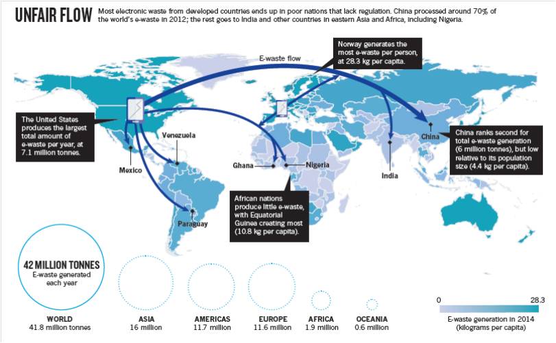 全球电子废弃物流向示意图