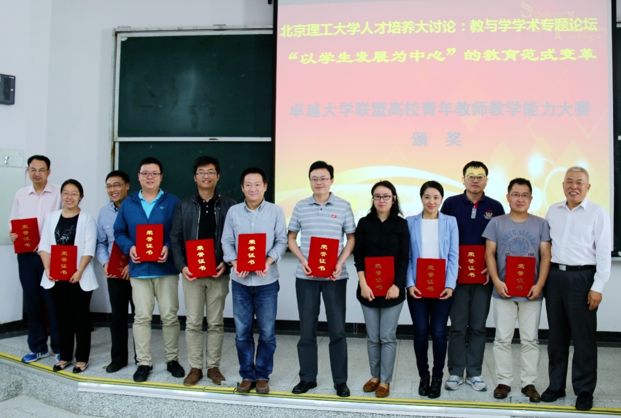 论坛对卓越大学联盟高校青年教师教学能力大赛中我校获奖教师进行颁奖,李和章副校长为我校19名获奖教师颁发了证书并予以祝贺。
