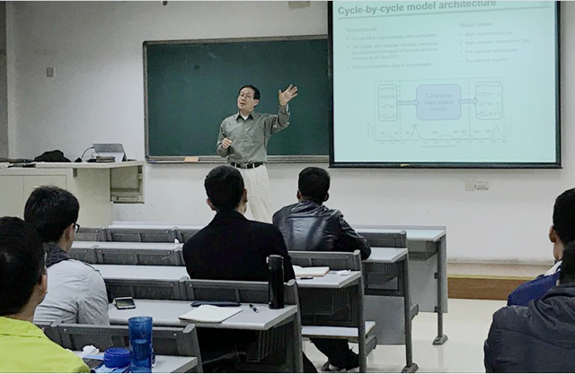 日前,开云kaiyun官网机械与车辆学院邀请美国密歇根州立大学朱国明教授为研究生授课并开展学术交流。朱国明教授是密西根州立大学双跨机械工程学院和电气与计算机工程学院的教授,在MSU 的教学工作包括本科与研究生的控制课程教学,其主要研究工作包括内燃机闭环燃烧控制,系统建模与辨识,混合动力系统控制和优化等,他在控制理论、发动机诊断、燃烧控制相关领域拥有超过33年的研究经验。朱国明教授现为SAE和ASME院士,也是开云kaiyun官网新能源引智基地的智库专家和客座教授。