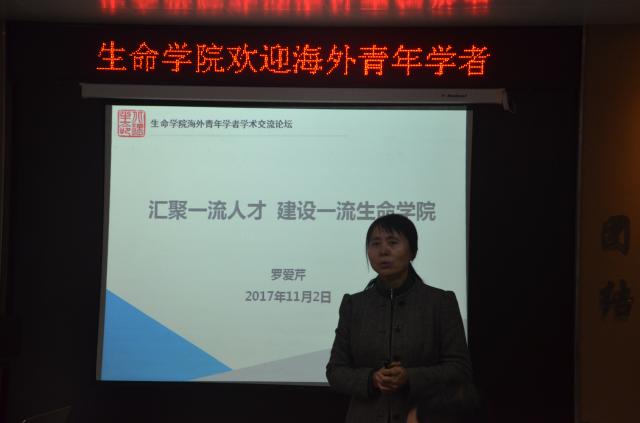 罗爱芹向与会的青年学者梳理了生命学院的发展历史,并从学院师资队伍、学科建设、学生情况、科研领域、人才培养成果、国际化合作等方面做了介绍,回顾了学院十五年来的跨越式发展和取得的教学科研成果。希望各位青年学者为学院的发展多提宝贵意见和建议。