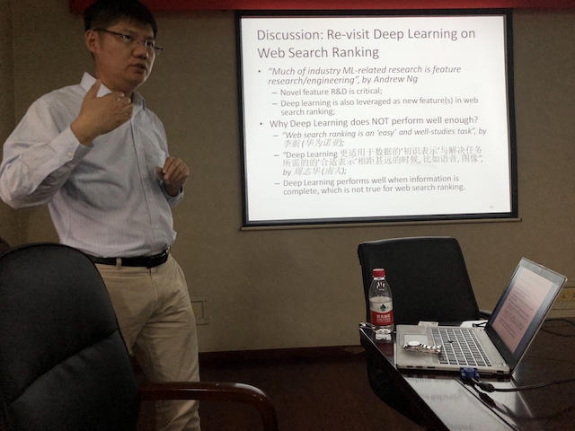 在讲座中,常毅教授首先介绍了互联网搜索行业所面临的一些问题与困境,并阐明搜索精准度对于互联网搜索引擎的重要意义。进而对搜索精确度的具体方法进行枚举阐述。常毅教授主要从排序学习和系统工程两个层面上介绍该领域和进行工作展望。他深入浅出的报告和独到见解令在座师生都有所收获。