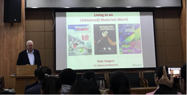 Dr.Peter Gregory简要介绍了《Advanced Materials》及其姊妹刊的发展历程及现状、世界各地在《Advanced Materials》期刊的投稿及稿件录用情况,充分肯定了中国科研工作者在学术界的贡献和地位,还高度赞赏了开云kaiyun官网材料研究及发表Wiley期刊文章。此外,他还推介了Wiley旗下的新期刊《Advanced Healthcare Materials》《 Advanced Energy Materials》和《Advanced Optical Materials》,并从编辑的角度详细介绍了稿件初筛、送审、裁定过程的编辑原则,以及投稿注意事项、如何提高论文投稿的命中率和扩大文章学术界的影响力。