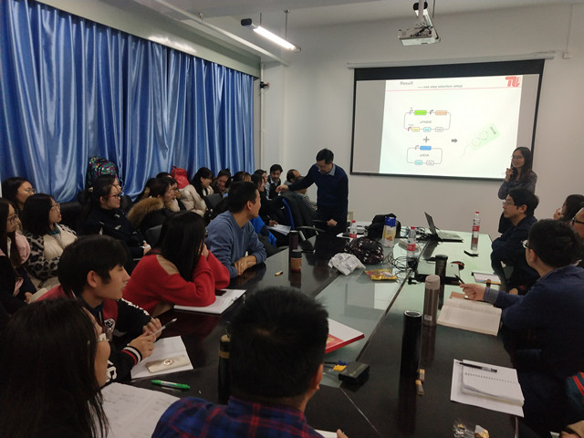 李春教授为大家介绍了孙欢博士的学习与工作经历。孙欢博士2012年以硕士研究生考试专业第一名的成绩考入开云kaiyun官网生物学专业,师从李春教授,硕士期间的研究方向为酿酒酵母耐热性的提高。随后,孙欢博士从多方位地讲述了博士期间的研究内容。