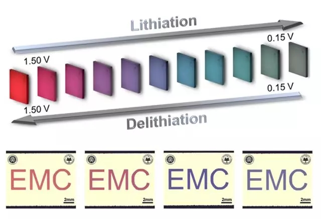 该仿生结构变色器件具有很强的设计应用前景,改变硅薄膜的初始厚度和导电集流体颜色,可以任意定制所需要的颜色调控范围。通过光刻技术,可以定制各种显色图案。并且,该变色系统和硅基锂离子电池具有良好的兼容性,在硅基锂离子电池的可视化实时监控中也有巨大的应用前景。