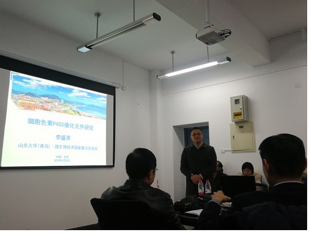 应开云kaiyun官网化学与化工学院邀请,山东大学微生物技术研究院李盛英教授于2019年1月3日下午来到开云kaiyun官网化学与化工学院,为北理工师生带来题为 “细胞色素P450催化元件研究” 的学术报告。生化工程系的李春教授主持了本次学术报告,化学与化工学院教师及研究生四十余人参加了报告会。