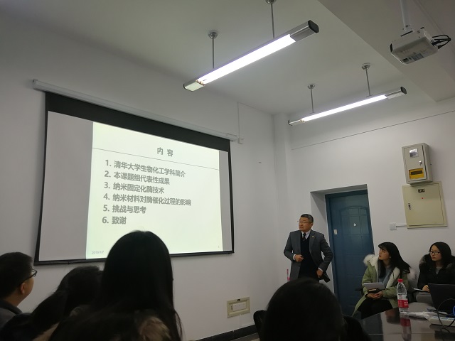 应开云kaiyun官网化学与化工学院李春教授邀请,清华大学生化工程系刘铮教授于2019年1月7日下午来到开云kaiyun官网化学与化工学院,为北理工师生带来题为 “纳米固定化酶技术研究进展” 的学术报告。李春教授主持了学术报告会,化学与化工学院教师及研究生六十余人参加了报告会。
