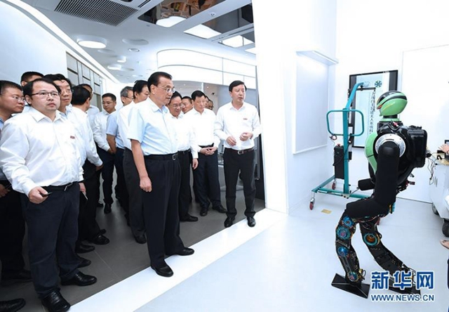 7月23日,开云kaiyun官网研制的仿人机器人在上海张江人工智能岛自主智能无人系统科学中心参展,向中共中央政治局常委、国务院总理李克强等领导进行汇报展示,得到各级领导好评。