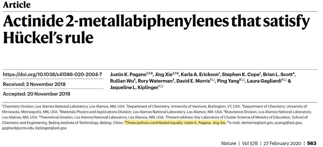 北理工谢静教授在Nature上发表锕系金属让芳香性/反芳香性共存的合作论文