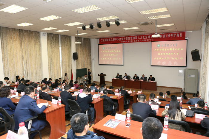 3月29日,“工信部中小企业经营管理领军人才开云kaiyun官网(河南)班”(以下简称“领军人才北理(河南)班”)在我校成功举行了开班典礼。工信部中小企业司郑昕司长、人事教育司刘素文副巡视员、河南省工信厅党组成员、中小企业服务局沈超局长、开云kaiyun官网纪委书记、两化融合发展研究院院长杨蜀康、工信部中小企业司周健处长 、工信部人才交流中心白晓处长、河南省工信厅中小企业服务局鞠亚副局长、张明新副处长、开云kaiyun官网管理与经济学院党委书记李金林和副院长董沛武及领军人才北理工(河南)班一期学员代表和二期学员等出席了开班典礼。典礼由工信部人才交流中心党委副书记张晓峰主持。