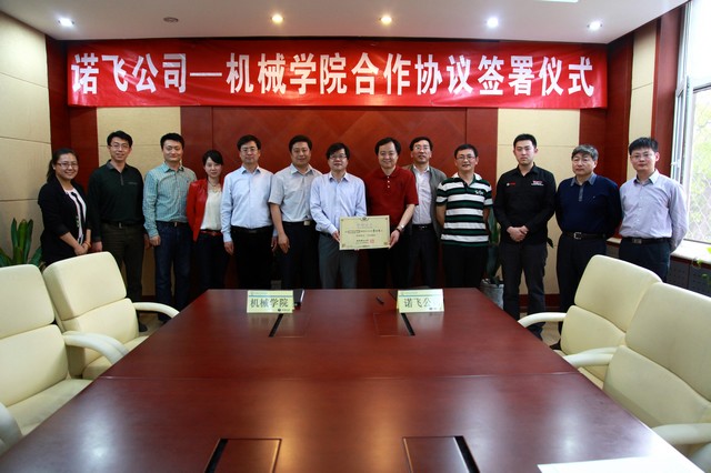 2014年4月25日下午,北京诺飞金属材料有限责任公司(以下简称“诺飞公司”)一行到访北理工机械与车辆学院,就捐赠大学生方程式赛车科技创新活动事宜达成一致,签署了《“诺飞方程式赛车基金”捐赠协议书》。本年度诺飞公司将以资金的形式进行捐助,用于方程式赛车队和纯电动方程式赛车队开展技术研发、学术交流和国内参赛活动。诺飞公司主要领导和北理工教育基金会办公室、机械与车辆学院的相关师生共同出席了捐赠仪式并进行座谈。