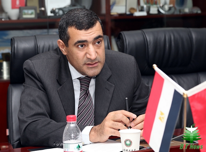 宾主寒暄之后,赵长禄副校长介绍了北理工与埃及高校进行学生培养和科研合作的情况。他说,中埃两国同为历史悠久的国家,具有战略合作伙伴关系。北理工近年来致力发展办学国际化,与埃及政府、高校和科研机构间建立了良好的合作关系。赵校长表示,很高兴见证埃及驻华使馆文化处与北理工留学生中心签署合作交流意向书。相信在埃及高等教育部的推动下,北理工与埃及高校及教育机构的合作会更加深入。北理工也将致力于促进中埃两国的教育文化交流。