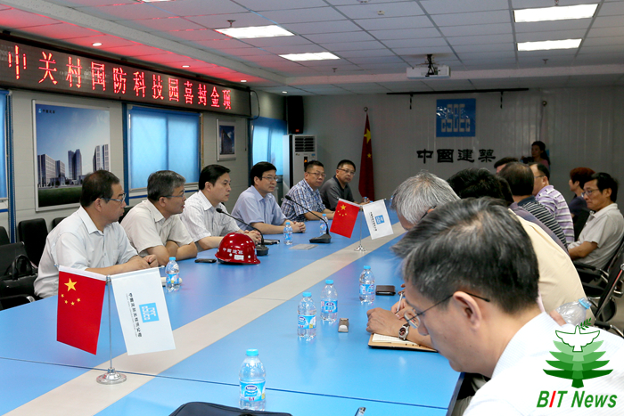 封顶仪式开始前,学校在工地一层会议室召开了工程建设协调会。资产公司总经理杨志坚就工程建设的进度、资金使用、招租、物业管理、廉政建设,以及工程建设存在的问题向参加会议的校领导及职能部门领导进行了汇报。胡海岩校长等校领导针对工程建设存在的问题进行了现场研究,并作出了明确指示。