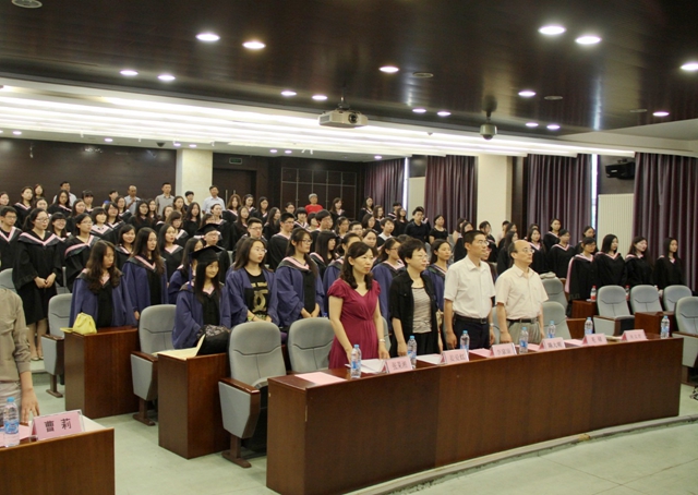 典礼的最后,李京廉教授、陈大明教授和姜爱红教授为每一名毕业生授予了学位、颁发证书,并与同学们合影留念。