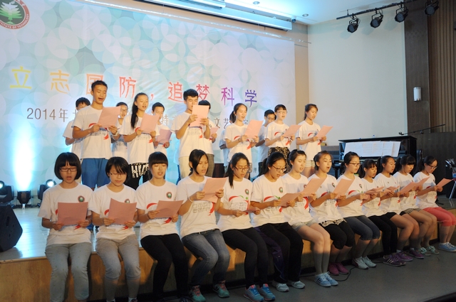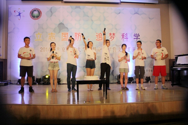 由80名营员一起参与《青春交响诗》大型朗诵节目,将晚会推向高潮。齐声的朗诵和充沛的情感,将年轻的活力表现地淋漓尽致,更体现了他们承担国防与科技责任的决心。