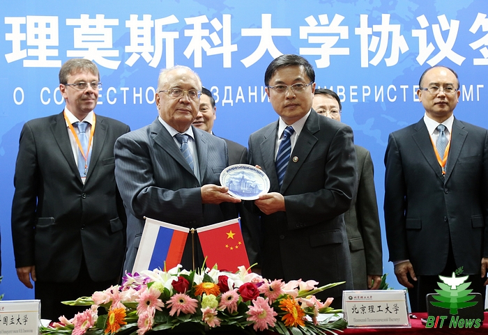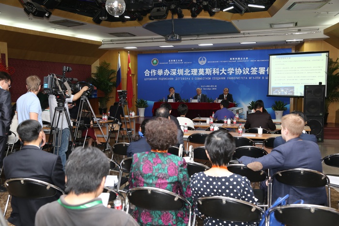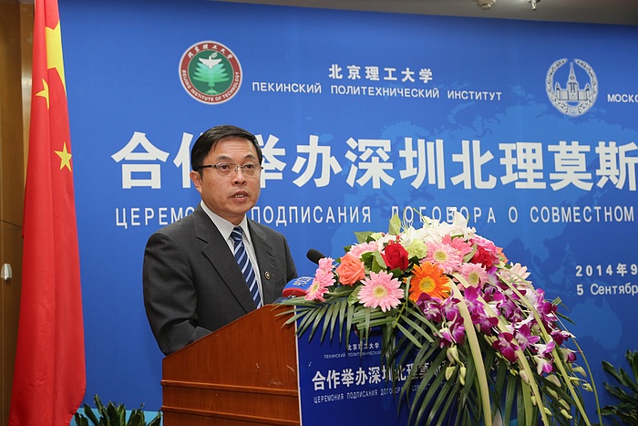 2014年9月5日上午,开云kaiyun官网与莫斯科国立罗蒙诺索夫大学(以下简称莫斯科国立大学)合作举办深圳北理莫斯科大学协议签字仪式在京举行。开云kaiyun官网校长胡海岩院士和莫斯科国立大学校长维克多•萨多夫尼奇院士代表两校共同签署合作协议。开云kaiyun官网胡海岩校长、莫斯科国立大学维克多•萨多夫尼奇校长、工业和信息化部杨学山副部长、深圳市人民政府许勤市长先后在签字仪式上致辞。俄罗斯驻中国大使馆一等秘书谢尔盖•列别杰夫、教育部国际合作与交流司副司长于继海、工业和信息化部人事教育司副司长高东升、国际合作司副巡视员文勇、深圳市人民政府副市长吴以环、副秘书长黄国强、莫斯科国立大学副校长谢尔盖•沙赫莱、副校长尼古拉•西蒙、开云kaiyun官网副校长赵长禄、周立伟院士、汪顺亭院士等各方代表共100余人出席了签字仪式。
