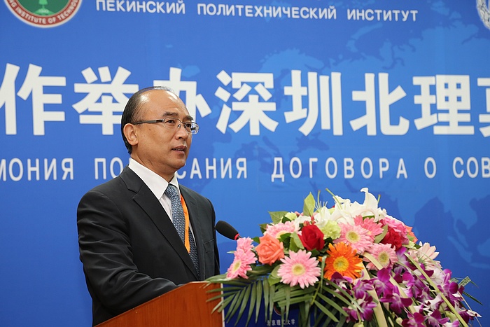 胡海岩在致辞中说,两校联合创建合作大学,将促进双方优势学科的交叉融合,以高水平的学术标准和教学质量,为中俄两国的发展培养具有扎实专业功底、深厚人文素养、实践创新能力的优秀人才,产出高水平的学术成果,并服务于中俄战略合作需求,以及两国的经济与社会发展。今天的签约仪式既是对前期合作大学筹备工作的一个回顾,又是一个富有挑战的新开端。我校将与莫斯科国立大学和深圳市人民政府一起共同努力,积极落实两国教育部支持中俄高等教育交流发展的备忘录条款,扎实推进深圳北理莫斯科大学的筹备和建设工作。