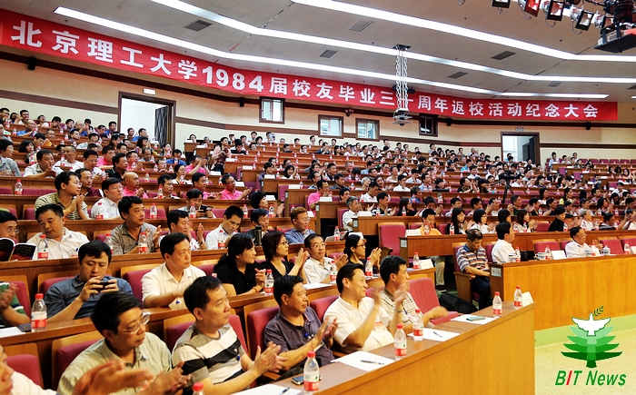北京航空航天大学党委常务副书记、16801班张维维;航天科技集团公司五院西安分院副院长、81801班宋燕平;总装装甲军代局局长、31801班周泽军;广东省东莞市统计局局长、42801班梁佳沂;新华通讯社技术局局长、51801班吕锐;中组部领导干部考试与测评中心主任、62801班李庆;众安保险董事局主席、10801班欧亚平分别代表教育界、科研领域、军队系统、政府部门、民营企业的校友发言。张维维校友发言中提出,人生有三件大事:出生、上大学、婚姻,感谢母校的精心培育,借今天返校相聚的机会,和同学们、师长们道一声亲切的问候以表达心中的感恩和敬意。宋燕平校友谈到,30年弹指过,世界在变,国家在变,母校在变,学子在变,但始终不变的是校友们作为“京工人”的赤子之心,他还邀请与会的校友在毕业40周年之际共返母校,再次见证母校新的辉煌。周泽军校友表示自己的每一点进步都和学校分不开,工作中用在母校学到的知识解决问题,掌握的技术克服困难,感谢母校的培养帮自己圆了从军梦、强国梦。梁佳沂校友感慨30年来,无论是在海外,还是在国内学习、工作,母校对他在求知、做人、做事上面都产生了深远的影响,母校时刻在心中。吕锐校友回忆了在北理工学习生活的日子,他提出三个感谢,第一感谢学校提供的这个使毕业多年的校友们能重返母校与新老学校领导、教师重逢的机会,第二感谢曾经辛勤培育他们的教师,第三感谢参与活动的校友们,来到母校重温激情燃烧的岁月,为未来的人生之路再鼓一次气,加一回油。他也期待母校的延河之水,宝塔山精神能继续发扬光大,培养出更多优秀的校友。李庆校友在发言中说道,回到9月的校园,见到30年未曾谋面的同窗,回想起昔日一起朝夕相处的四年,既激动又兴奋,也感叹时光的流逝。同时,他祝愿北理工早日成为世界一流大学,培育出更多踏实、本分的优秀学生。欧亚平校友回忆了大学时代生活,分享了创业经验与感受,感谢了多年来一起并肩工作的同学们。