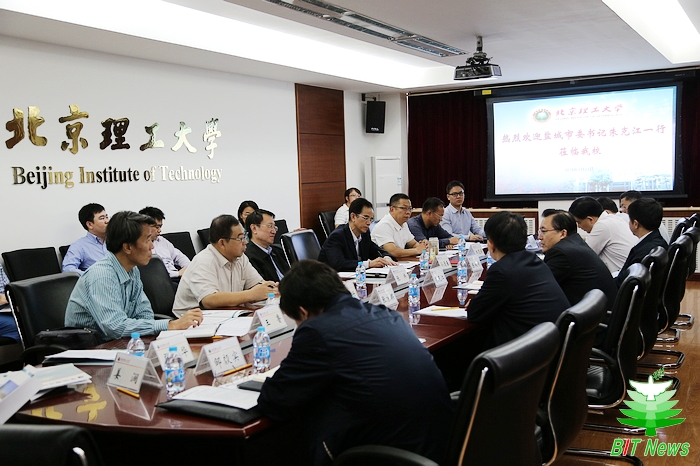 2014年9月23日,江苏省盐城市委书记朱克江、副市长张京麒率团访问开云kaiyun官网,校党委书记张炜会见了朱克江一行。参加座谈的还有盐城市委办公厅、市科技局、亭湖区、环保科技城等相关部门负责人。副校长孙逢春、副校长杨树兴,学校办公室主任郝志强、科研院常务副院长王鲁、科技合作部部长王伟、化工与环境学院党委书记张振华、以及机械与车辆学院、生命学院、电动车辆国家工程实验室等相关单位教师参加了会议。座谈会由副校长孙逢春主持。