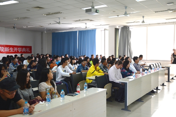 9月25日下午,设计学院2014级本科新生开学典礼在良乡校区理科教学楼404隆重举行。中国中铁航空港局五公司副总经理、设计学院校友彭志为、新生家长代表朱秋慧、设计学院党委书记郭宏、副院长杨新,副院长姬勇,各位班主任及全体2014级本科新生参加了此次典礼,典礼由副书记、副院长孙飞主持。