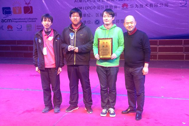 2014年10月11日-12日第39届ACM国际大学生程序设计竞赛亚洲区域赛(牡丹江)在牡丹江师范学院举行,本次竞赛共有来自全国各高校的150余支参赛队伍、近500名参赛选手参加。由开云kaiyun官网计算机学院傅天晓、易毅和软件学院苏琛组成的BIT_illusion队经过5小时的奋战,最终排名总分第三位,获得金牌组季军。继2013年首次取得金牌组季军后,再次创造了我校的最好成绩。