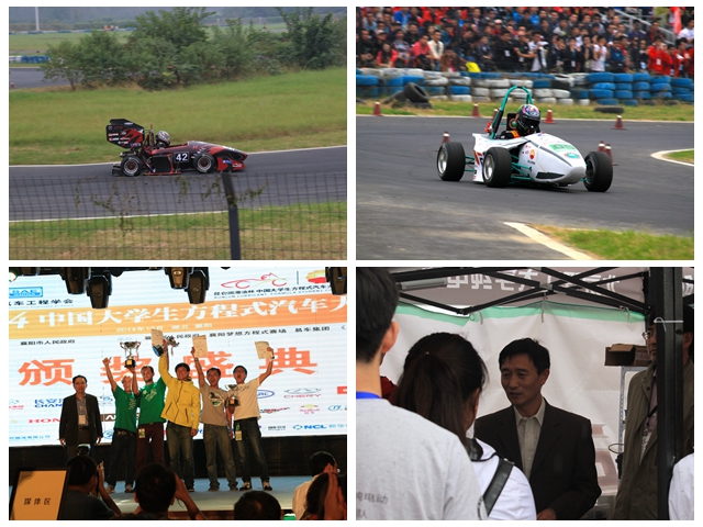 2014年10月14—18日,第五届中国大学生方程式汽车大赛(简称:FSC2014)在湖北如期举行,来自近70所高校的60支燃油赛车队和20支纯电动赛车队,共计2000余名师生参加了比赛,其中不乏德国斯图加特大学纯电动赛车队、德国卡尔斯鲁厄理工大学燃油赛车队等国际顶级强队。北理工派出了“北京汽车”燃油赛车队、“北理工”纯电动赛车队共计40余名师生、两辆学生自己制作的赛车参赛,获得大学生车手挑战赛冠军及赛车设计、高速避障、节能效率等八项单项奖,最后总分分别位居纯电动组亚军(同时为国内高校冠军)、燃油组亚军,实现了两辆赛车同时参赛并同时获奖的新突破。在本赛事创建五周年之际,北理工被赛事组委会授予“创始院校奖”,指导教师团队成员徐彬被赛事组委会授予“突出贡献奖”。