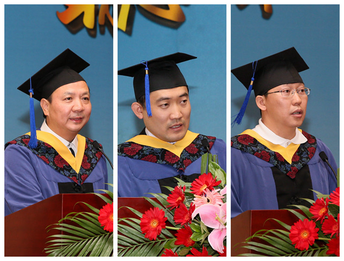 周易同学、孙智同学、滕伟川同学代表分别代表EMBA、MPA、工程硕士毕业生发言,在发言中对学院三年来的培养之恩和老师的谆谆指导表达了诚挚感谢,祝福同学们在各自的事业上取得成绩,祝福母校在建设世界一流理工大学的道路上节节攀升,祝福管理与经济学院在建设国际一流管理学院的过程中续创辉煌。