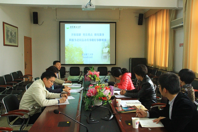 陈茹副局长认真听取了我校离退休工作的相关介绍,并就有关工作进行了深入的了解。她认为北理工对离退休工作非常重视,各项离退休工作思路清晰、特色鲜明,政策落实的十分扎实,取得了良好的实效。她希望北理工继续发挥高校的智力优势,在离退休工作转型发展、科学发展方面继续深入研究,提供更多更好可资借鉴的经验和建议。