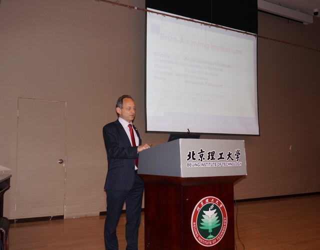 Ramon Wyss副校长一行还访问了信息与电子学院以及自动化学院,与相关教授进行了座谈,参观了智能机器人研究所,并为我校师生作了题为“From Nobel Prize to World-class Engineering Education-Meeting Global Challenge”的报告。