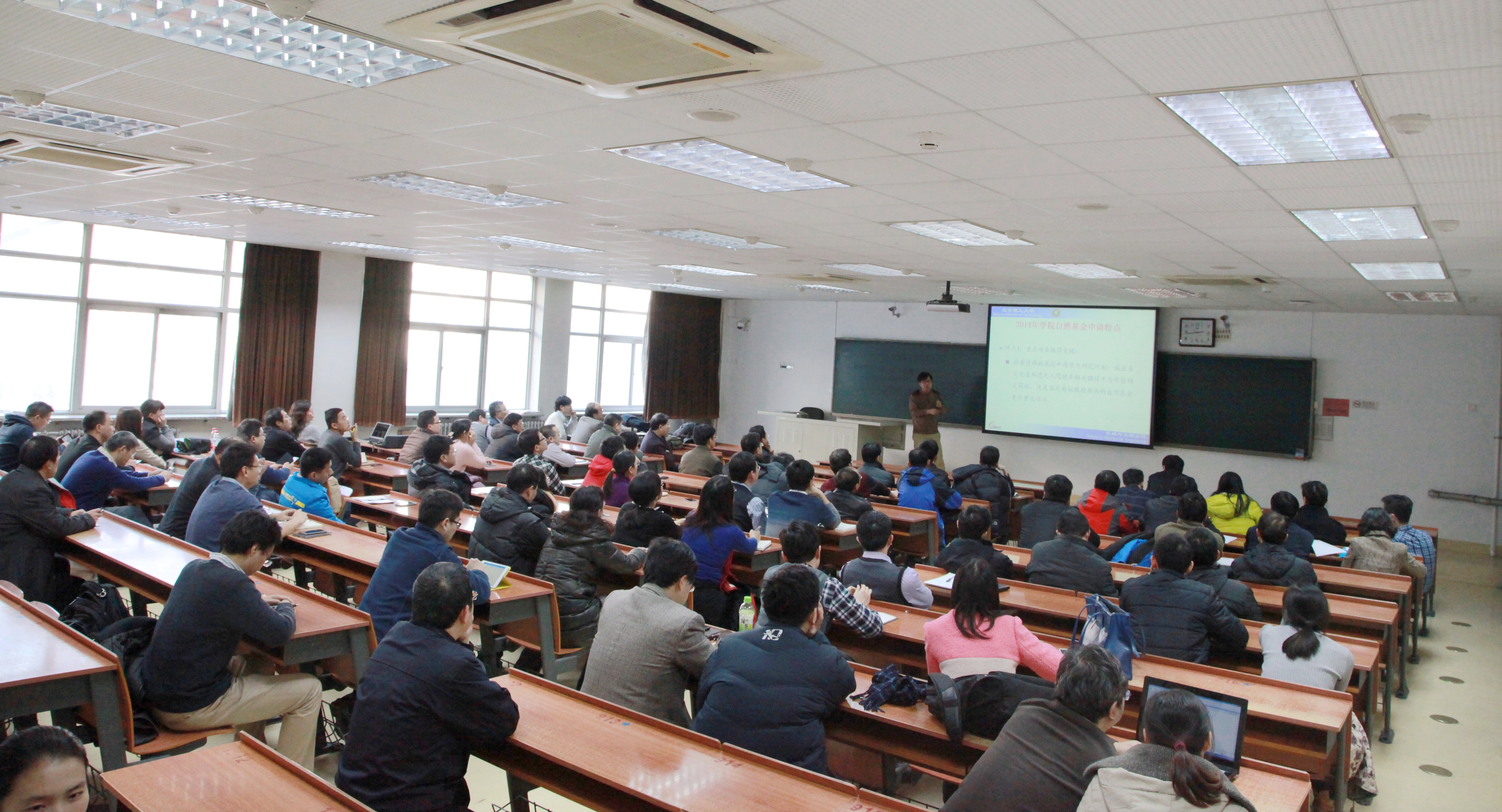 首先,胡纪滨副院长从2014年自然基金概况、学院自然基金趋势、特点分析、对策和措施,以及2015年国家自然基金委员会的政策变化等五个方面,详细分析了学院2015年国家自然基金申请需要关注的情况。他建议,老师们要把自己的基础研究方向和工程研究方向紧密结合,充分利用假期时间,在申请书的创新性上多下功夫,并预祝申请的各位教师能在2015年顺利获得基金委资助。