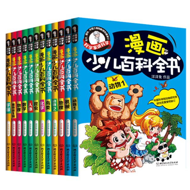 全套书包含《昆虫》《鸟类》《机械》《人体》《物理》《化学》《数学》《宇宙》《地理》《动物1》《动物2》《植物微生物》12个分册,在内容上充分发挥了漫画的优势,将各种科学知识融入一个个有趣的漫画故事中,能够全面激发小读者的学习兴趣,有利于培养科学思维和创新能力。