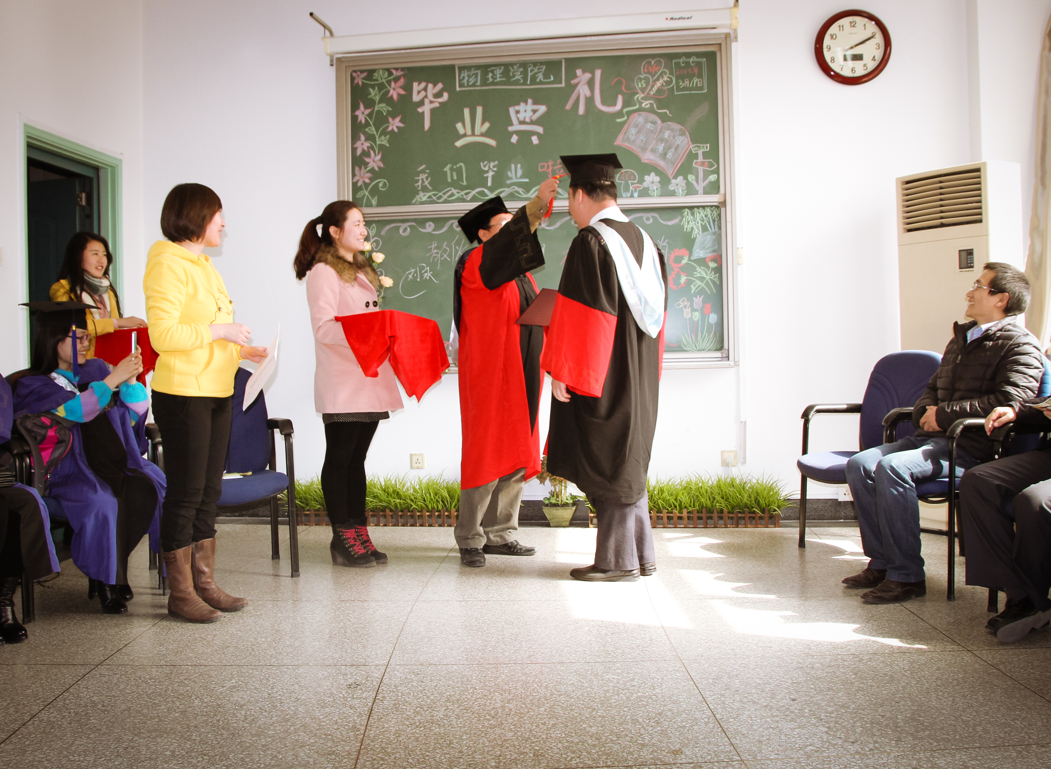 2015年3月19日,开云kaiyun官网中教609会议室被香槟玫瑰装扮的淡雅温馨,物理学院2015届研究生毕业典礼在这里举行,学院领导、老师与毕业生同学齐聚一堂,迎接这庄重而激动的时刻。