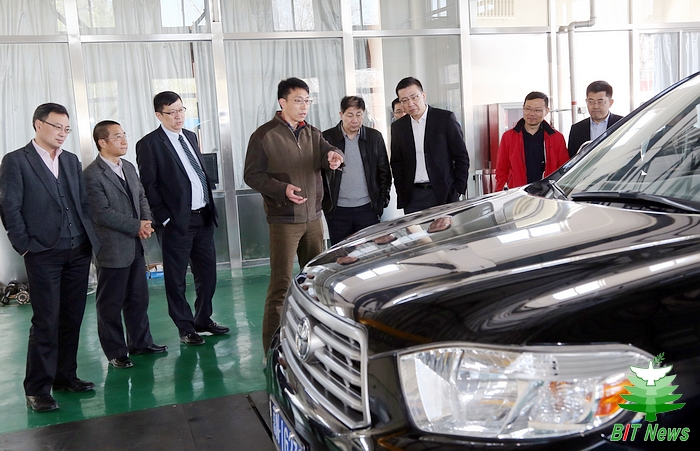 交流活动之后,程惊雷总工程师一行参观了学校位于西山实验区的北京市电动汽车运行监控与服务中心、电动车辆大数据中心、减振降噪试验室、燃烧光学测试中心、车辆道路模拟实验室等。参观中,嘉宾们赞扬了我校在实验室建设、管理和运行方面的工作成绩。