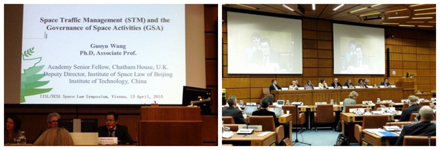 同时应国际空间法学会和欧洲空间法中心邀请,在其联合主办的空间法论坛上作题为“空间交通管理和空间活动治理”的报告。该论坛在联合国外空委法律小组委员会界会的主会场的召开,往往对法律小组议题的探讨具有重要的参考和指引作用。王国语是受邀请参加该论坛的第一位亚洲学者。