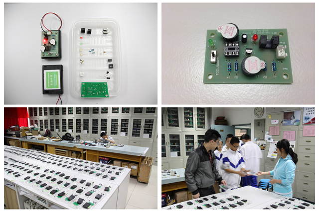 按照北京市教委的主导思想,光电创新基地专门针对初中一年级学生的知识水平和心理特点,设计了适合他们的科技制作作品——光电报警模块和声光电信号发生器模块,并全面做好了人员、器材、工具、场地等准备工作。