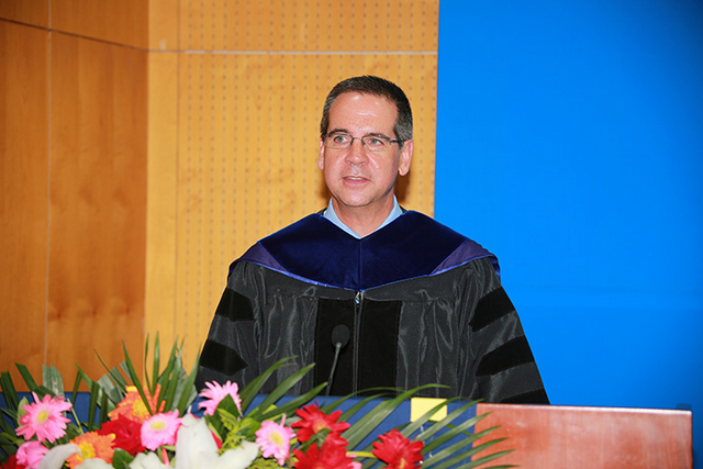 副教务长Robert W. Wagner教授发表致辞,他表示非常荣幸与我校进行合作,并对我校师生的热情友好表示感谢,对教职员工的辛勤付出表示敬意。他简要介绍了犹他州立大学的学校概况及学科优势,表示同学们所属的亨茨曼商学院是美国西部历史最悠久的商学院。在如今全球化的大背景下,两校合作办学的教育实践消除了国界的阻隔,把世界融为一所大校园,为过去和现在搭建了桥梁,为国际社会做出了贡献。在即将踏上人生下一个台阶之际,他希望同学们无论是就业还是继续深造,都要学以致用,永远不要停下学习的脚步。最后,他向所有在座学生表达了美好的祝愿。