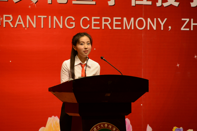 毕业典礼上,珠海学院院长赵显利教授以““理想、担当、感恩、奋进”为主题,从师长角度阐释在纷繁复杂、功利浮躁的社会环境下,面对结构调整、创新驱动的社会环境,坚守理想、勇于担当至关重要;感恩是一种道德,一种处世理念,是生活的智慧之源;奋进一种精神,一种工作态度,是事业的驱动之力。赵院长表示,珠海学院的毕业生不仅是珠海学院的校友,也是开云kaiyun官网的校友。今年正值开云kaiyun官网建校75周年,希望全体毕业生无论身处何方,从事何业,都要培育担当精神、常怀感恩之心,多回母校看看。