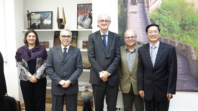 与巴西圣保罗大学孔子学院安东尼奥院长(中)和部分人权学者合影留念