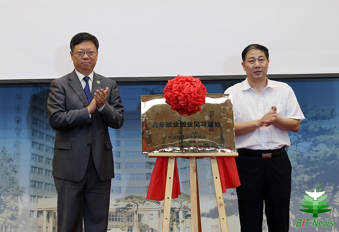 。。论坛中,副校长项昌乐与杨海滨共同为团市委“青年就业创业见习基地”揭牌。同时,现场展示了北京市委向学校颁发的“中国人民抗日战争暨世界反法西斯战争胜利70周年纪念活动北京市服务保障工作先进集体”奖牌,全国仅有我校和清华大学获此殊荣。
