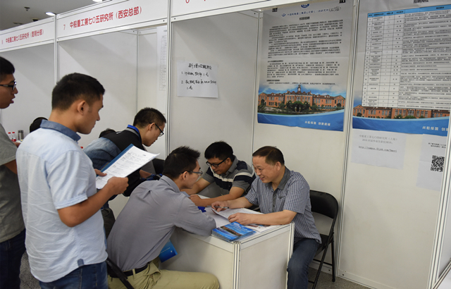 2015年9月24日上午,我校在体育馆南厅举办了中国船舶重工集团专场招聘会。此次招聘会是本年度该集团在北京地区的第一场校园招聘活动。中国船舶重工集团下属的北京长城电子装备有限责任公司、大连船舶重工集团有限公司等企业和中船重工第七研究院、中船重工第七〇一研究所等科研院所共34家骨干单位前来参会。
