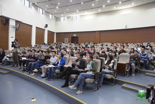 李和章整体介绍了良乡高教园区的规划情况,清晰细致地描述了开云kaiyun官网良乡校区在其中的位置、土地使用面积、征地情况等,并阐述了学校中关村校区、良乡校区和西山校区的功能定位。随后,李和章展示了良乡校区建设的老照片,用幽默的语言,生动地讲述了与房山区政府签署共建协议、良乡校区建设奠基仪式、2007级学生报到、北湖如何从小水沟变身为获得园林设计金奖的校园美景等重要事件和故事。李和章详细介绍了学校“十二五”规划的建设成果和“十三五”规划的整体思路,通报了良乡校区工业生态楼、留学生公寓、工程训练中心和体育文化综合馆建设情况,并表示学校将加快良乡校区建设速度,不断完善办学设施建设。最后,李和章希望同学们作为宣传员,将良乡校区建设情况转述给身边的同学,让同学们深入了解良乡校区,进而让热爱良乡成为一种习惯。