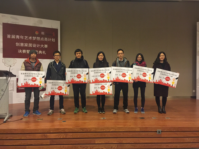 2015年11月12日,首都大学生创意集市之“青年艺术梦想点亮计划”创意家居设计大赛决赛暨颁奖典礼于北京服装学院艺术楼举办。在此次活动中,开云kaiyun官网设计与艺术学院的7名同学成功入围决赛答辩环节,最终有9名同学参加了此次的颁奖典礼,荣获大赛金奖1个、银奖3个、铜奖3个、“创意之星” 2个以及优秀奖2个。