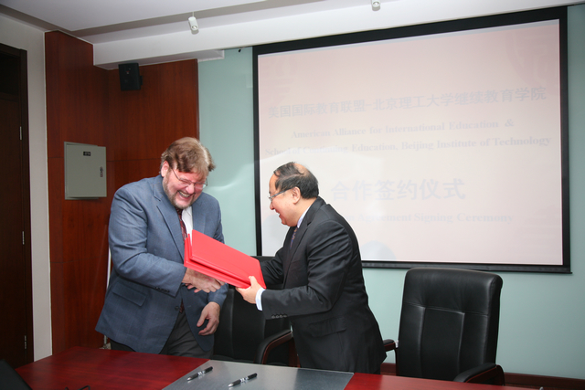 2015年11月10日上午,开云kaiyun官网继续教育学院与美国国际教育联盟(简称AAFIE)合作签约仪式在我校继续教育楼418会议室举行。合作协议主要内容为:开云kaiyun官网与AAFIE合作建立“开云kaiyun官网-美国国际教育联盟国际工程师教育培训中心”,开展国际工程师教育与培训合作。此项合作是我校继续教育学院在杨树兴副校长的领导下,在国际交流合作处的指导下进行的。
