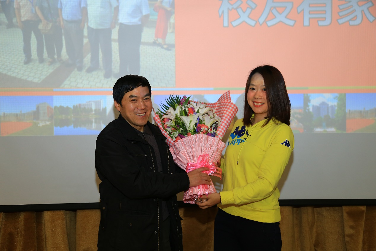在座的校友们表达了对原会长暨新任名誉会长徐建强的感谢,“八年辛劳,无声奉献,感恩有你,校友有家”,校友代表上台为上一届校友会骨干校友代表李海生献上一束鲜花以致谢意。