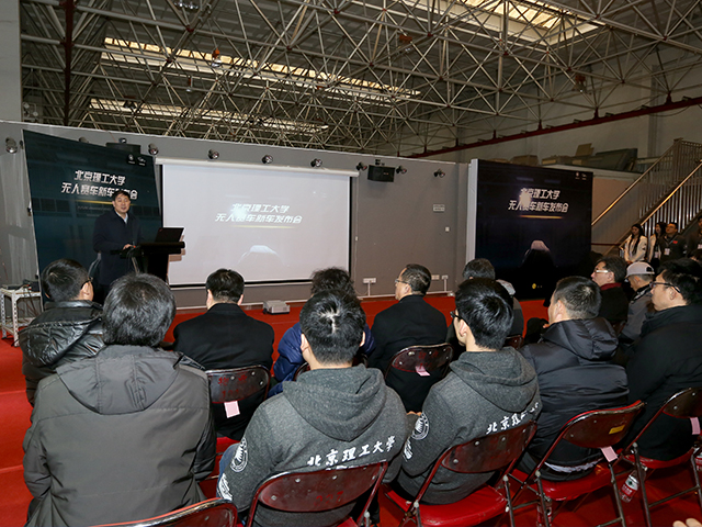 。。机械与车辆学院常务副院长胡纪滨教授首先致辞,在学校大力推进综合改革工作的背景下,学院大胆尝试,积极探索新时期、新需求下的科学研究与学生科技创新工作相结合的模式,而无人赛车队的成立,正是学院创新机制的一种探索。他表示,世界首辆无人驾驶大学生方程式赛车的研制,充分代表了我校、乃至中国大学生的水平,具有极高的展示度与学界影响力,学院也将以无人赛车队为试点,探索面向研究生的科技创新团队的运营模式,并欢迎来自全校不同学院的研究生充分利用无人赛车平台开展学术研究。