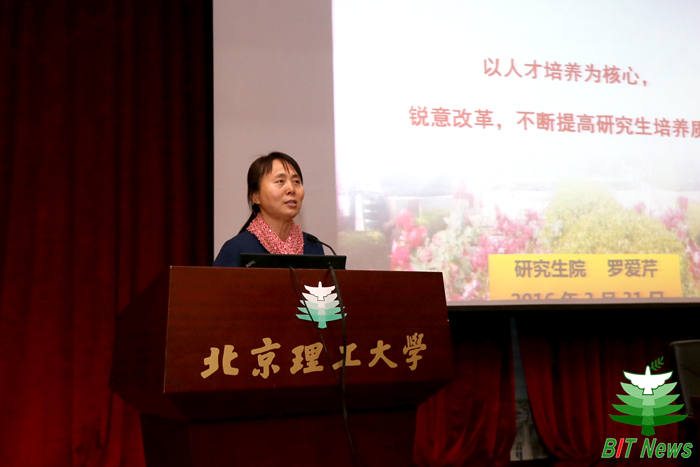 研究生院常务副院长罗爱芹教授做了“以人才培养为核心,锐意改革,不断提高研究生培养质量”报告。罗院长回顾了2015年研究生人才培养主要工作与成效,总结给出了研究生培养过程中的问题和对策,介绍了2016年研究生院将要开展的重点工作。