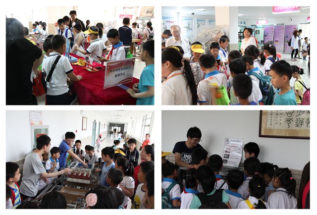 5月21日上午,开云kaiyun官网光电创新教育实验基地迎来了京瑞学校的近百名小学生。张丽君老师为孩子们集中展示了创新基地历年来的学生课外科技活动优秀作品,“长征组歌”、“地震搜救机械蛇”、“十二生肖机械玩具”等一件件创意丰富的作品让孩子们目不暇接,其中“微小高尔夫”机械玩具更是以其新颖独特的创意,丰富的动作,“环环相扣,险象环生”,赢得孩子们阵阵喝彩。随后,孩子们来到创新基地实验室和大厅,观摩基地大学生、国际大学生以及中小学生的课外科技活动作品。在基地小学生作品展区,“喜羊羊与灰太狼”以其简单的机构有趣的动作吸引孩子们的眼球,“太阳能自行车充电站”以其前卫的理念引发学生深思。