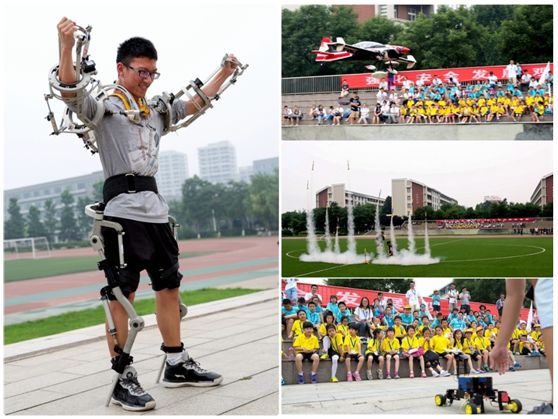 培养小营员的科学精神,是本次夏令营的主要设立意图,为此,夏令营邀请了我校航模队、机器人创新基地、科普宣讲团的同学们,为小营员带来了别开生面的展示和讲座,仿真体外机器骨骼、机器狗、滑翔机、飞机拉烟飞行、四旋翼飞行器、3D特技机及火箭模拟发射等展示,让小营员们惊叫连连,大呼过瘾;科普宣讲团讲师们给小营员的科普讲座,浅显易懂且妙趣横生,大大的激发了小营员们对科学的兴趣。同时,充分利用大学生科技创新基地资源,组织营员们体验了暴风眼镜、Leapmotion体感控制器、3D电影、3D打印设备以及虚拟漫游游戏The Room。小营员们在过程中感受到了科技为生产生活带来的变化。