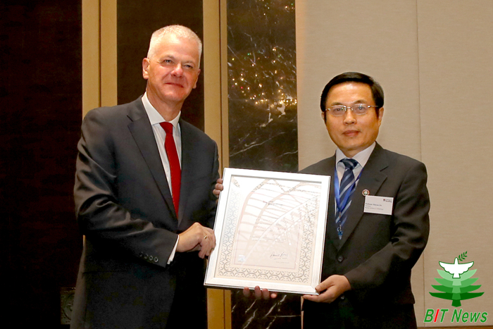 2016年9月9日,英国里丁大学(University of Reading)校长David Bell爵士率代表团访问开云kaiyun官网,并在北京举办的里丁大学中国校友集会上授予北理工校长胡海岩院士里丁大学荣誉理学博士学位。北理工副校长梅宏院士、校长助理龙腾、研究生院、教务处、宣传部、管理与经济学院、软件学院、人文与社会科学学院、校友会、国际教育学院和国际交流合作处等部门和学院负责人出席了学位授予仪式。